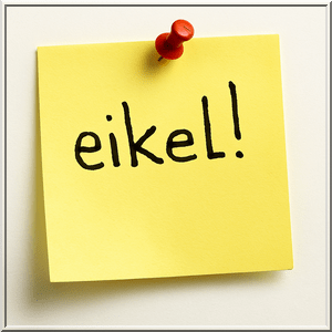 Een lichte hoofdpijn maakt zich van mij meester en ik verlang heimelijk naar een weekje Wijk aan Zee met dwangverpleging. Maar gelukkig heeft Huib een nieuw slachtoffer gesignaleerd. Met een jolig ,,Nou, tot ziens dan!”, draait hij zich schielijk om ter voorbereiding op zijn volgende prooi. Dan zie ik achterop zijn jasje zo’n klein post-it-stickertje zitten. Er staat iets op. Ik doe een klein stapje naar voren en ik lees in vette viltstiftletters het woordje ‘eikel!’… inderdaad mét uitroepteken. Dat moet toch een practical joke op kantoor geweest zijn. Even overweeg ik om Huib te waarschuwen. Een volwassen vent laat je toch niet over zijn volle vrijdagmarkt met een stickertje op zijn rug lopen… toch?