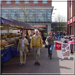 Alles doet hij langzaam. ,,Met beleid”, zoals hij het zelf omschrijft. Zo loopt hij ook over de markt, zich bewust van elke, ietwat pijnlijke ministap, maar toch uiterst doelbewust. Vrijdag boodschappen: aardappels bij de ne kraam, prei en witlof één gangpad verder. ,,Die haal ik altijd bij die grappige Marokkaanse jongens die de hele dag lopen te dollen… of zijn het Turken? Da’s me nou nooit helemaal duidelijk geworden. Ze zijn in ieder geval altijd reuze vriendelijk.”