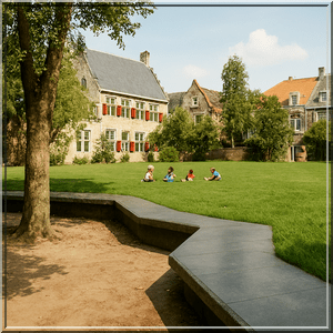 De Kloostertuin in Dordrecht, zeg maar dat groene hofje achter dat echte Hof, kreeg, nu alweer zo’n twee jaar geleden een face-lift. Dat moest van de gemeente, want er deugde helemaal niks van. Er stonden te veel bomen en die gingen dan ook, tot groot verdriet van de omwonenden, subiet tegen de vlakte. Het moest ook overzichtelijker worden, want al die beschoeiing bood beschutting (zeg maar onzichtbaarheid) aan allerhande duistere types die graag hun dagjes (en soms nachtjes) op een van de bankjes in de tuin doorbrachten. De gezichtsverandering van de Kloostertuin was ook voor een groot deel ingegeven door grote plannen die het ouwe Hofkwartier ja zelfs de hele binnenstad, moeten opstuwen in de vaart der volkeren. In de toekomst zou het mogelijk zijn om vanaf de Statenschool, waar ooit het erfgoedcentrum DiEP (een combinatie van gemeentelijk Stadsarchief, monumentenzorg en Archeologische dienst) een museale functie zou krijgen, te wandelen richting het Hof (waar ooit een zogeheten Huis van de Democratie zou komen). De route zou dan verder lopen door de Kloostertuin, richting het vernieuwde museum en de toeristen zouden hun ogen uitkijken. Het liep allemaal anders: die ontwikkeling van het Hofkwartier zit in een stroomvertraging, DiEP kwam er wel, maar in een uitgeklede versie (en niet in de Statenschool) en dat Huis van de Democratie laat nog altijd op zich wachten. Wat overblijft is een fris, open stadsparkje, dat gebruikt wordt op een manier die je van een parkje mag verwachten: er spelen kinderen tijdens schoolpauzes, er hangen jongeren rond, er wordt gevoetbald, met frisbees gegooid, gelachen en gedold en afgelopen december werd er ook nog, een spontaan via twitter tot stand gekomen, sneeuwballengevecht gehouden.
