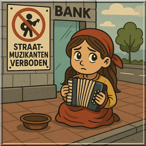 Ga ik ze missen, die meisjes met die lieve oogjes, bij het bankgebouw aan de Stationsweg of bij Albert? Half verscholen achter die accordeon waar ze eigenlijk geen raad mee wisten, oogden ze onschuldig maar wisten ze wel, o zo geraffineerd, het oogcontact te vinden met watjes als ik. Het leek of ze aan mij konden zien dat ik me ongemakkelijk voelde met hun aanwezigheid en dus altijd wel bereid was in mijn broekzak te graaien naar wat muntgeld. Het in deze gemeente uitgevaardigde straatmuzikantenverbod is natuurlijk helemaal geen straatmuzikantenverbod, maar een verbod op bedelen. En dat is dan weer jammer voor echte straatmuzikanten, al had Dordrecht op dat gebied de laatste tijd toch al niets te bieden. The ‘late and great’ Charlie van het Statenplein was eigenlijk de enige die bezoekers van de binnenstad nog een beetje wist te amuseren. Dat kwam overigens eerder door zijn charme dan door zijn stem en gitaarspel, want Charlie mocht dan een vrolijke verschijning zijn – ik werd in ieder geval altijd blij van hem – ook hij was niet bepaald een sublieme muzikant of zanger.