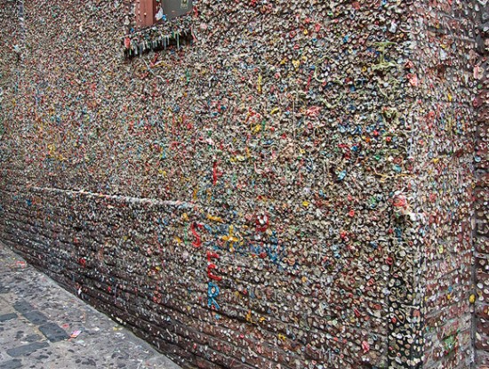 Foto: Volgens kenners is de ‘gumwall’ in het Amerikaanse Post Valley (Seattle) de mooiste kauwgommuur ter wereld.