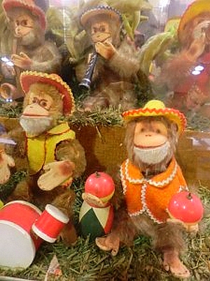 Héél even weer werd mijn ongrijpbare jeugd tastbaar gisteren. Ja, letterlijk zelfs, want daar stond ie dan en ik mocht hem zelfs aanraken, die Bimbo-box, die na jaren van afwezigheid weer te zien en te horen is in de toiletruimte op de tweede verdieping van V&D. Eerlijk gezegd wist ik niet eens dat ie zo genoemd werd. Wij spraken van de Mexicaanse aapjes of van de monkey-jukebox en de muziek uit die glazen vitrinekast voerde mij, als jochie in de jaren zeventig, naar exotische bestemmingen. Ja, nu ik volwassen ben weet ik dat het Herp Albert’s Tijuana Brass (‘Tijuna Taxi?’) was die mij destijds betoverde en dat was gistermorgen dus wel even een dompertje op de feestvreugde want er kwam hele andere muziek uit het apparaat. Op het zoetsappige ‘Red Roses for a Blue Lady’ van Dean Martin is het niet echt swingen geblazen voor die harige aapjes met hun fel gekleurde sombrero’s, trompetjes en sambaballen, maar onze eigen huishistoricus Jaap Bouman, tóch de aanstichter van dit alles, verzekerde mij dat hij op zoek gaat naar de juiste muziek. Bouman schreef een jaar of wat geleden in zijn rubriek Dordt Eigen-Aardig over die ‘verloren’ aapjes (,,Nooit eerder zo veel reacties op een verhaal gehad’’) en toen Dordtenaar Douwe Flier er een Facebook-pagina over maakte, die binnen luttele dagen vele duizenden ‘likes’ had, wist Jaap wat hem te doen stond. Hij legde contact met V&D (het apparaat bleek na een verbouwing in het Haagse filiaal terecht te zijn gekomen) en de directie, niet gespeend van historisch besef, ging ‘om.’ Op de onthulling waren tientallen mensen afgekomen… nee, niet alleen sentimentele ouwe zakken als ik, maar ook jonge moeders met kinderen. De Bimbo Box zou in deze ‘digitale dagen’ geen aantrekkingskracht meer op de jeugd uitoefenen, maar gisteren constateerde ik toch met eigen ogen dat de aapjes ook de kinderen van vandaag nog steeds kunnen betoveren. De toiletjuffrouw waakt nu als een moederklok over haar teruggekeerde ‘kindjes.’ ,,Bij mij kun je een muntje kopen en ik zorg dat de opbrengst naar het Sophia Kinderziekenhuis gaat.’’