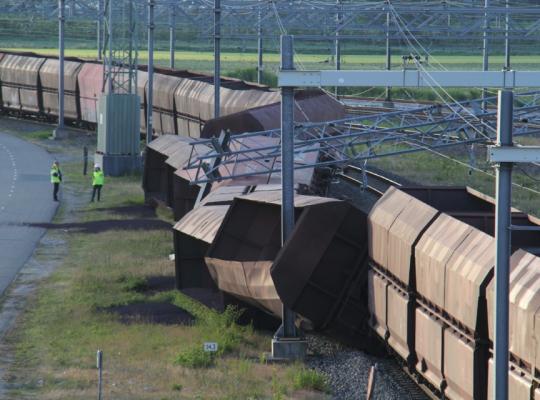 Vorige week ontspoorde hier weer eens een trein: maar liefst zeven wagons gingen plat en die waren gelukkig niet gevuld met een giftig goedje, maar met ijzererts, dus bleef het dit keer bij puin ruimen.