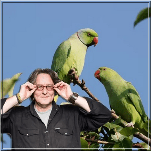 Sinds enkele weken bivakkeren ze elke avond met z’n zessen in onze tuin en waan ik me in een tropisch vakantieparadijs. Ik vind het prachtig, maar ook een beetje onwennig. Deze zogeheten halsbandparkieten – want dáár heb ik het over – zijn namelijk knalgroen en hebben een vuurrode snavel en die kleurcombinatie ben ik in mijn vogelparadijsje aan de Spuihaven simpelweg niet gewend.