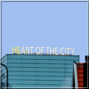 Laat ik vooropstellen dat ik ze mooi vind… die neonletters die onlangs bovenop de opbouw van Schouwburg Kunstmin geplaatst zijn. Die opbouw, destijds aangelegd om grotere producties (musicals, opera’s) in het theater te kunnen presenteren heeft namelijk een wat onbestendige kleur en in de avonduren of onder mistige omstandigheden is het soms nét of de tekst ‘heart of the city’ (soms te lezen als ‘art of the city’) in de lucht zweeft. Dus nogmaals prachtig om te zien en, wat mij betreft, verschaffen die letters het theater een terechte en gegunde ‘grandeur.’