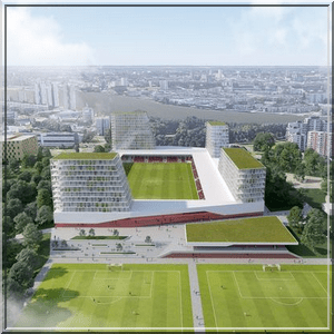Alleen eh… groeien doet het stadion vooralsnog niet, want tot op heden is in de afgelopen twintig jaar zo’n beetje elk nieuwbouw- en/of verhuisplan door de gemeente, de provincie of de club zelf (wegens uiteenlopende redenen) steeds weer min of meer in de kiem gesmoord. Enkele jaren geleden echter dook er ineens een plan op dat er wel heel lekker uitzag… gejat overigens van een ideetje dat Excelsior al eerder had. Het betreft een nieuw stadion (met zo’n zes-en-een-half duizend zitplaatsen) met daarin, eigenlijk ‘daaraan’, betaalbare (dus geen peperdure) appartementen. Een en ander zou dan ook nog eens gecombineerd kunnen worden met winkels, een fitnessclub en/of een gezondheidscentrum.