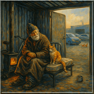 En dus voert Bertus ze met beleid. De medewerkers van het bedrijf hebben hem inmiddels voorzien van een kacheltje, een matras, een paar stevige dekens en uit de personeelskas ontvangt hij een bescheiden weekbudgetje om eten te kopen… voor zichzelf én de katten. Sinds kort beschikt hij zelfs over een dienstfiets, want lopen naar de dichtstbijzijnde supermarkt lukt niet meer.