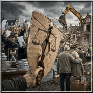 Maar wie denkt dat het bezwaarrecht een machtig schild is voor de gewone Dordtenaar, moet óók naar de Weeskinderendijk kijken. Daar wonen mensen die niet zeuren over schaduwwerking of parkeerdruk, maar die gewoon keihard hun huis verliezen. Zij hebben alle stappen gevolgd, alle inspraakmomenten benut, alle brieven geschreven. En tóch worden ze straks gewoon weggevaagd. Toegegeven, mét (hopelijk) goeie financiële compensatie, maar wat heb je daaraan als je in je dijkhuisje domweg gelukkig was? Voor die groep heeft het hele systeem dus geen greintje nut gehad. Zij zijn niet beschermd door de wet… ze zijn er legaal door van de kaart geveegd.